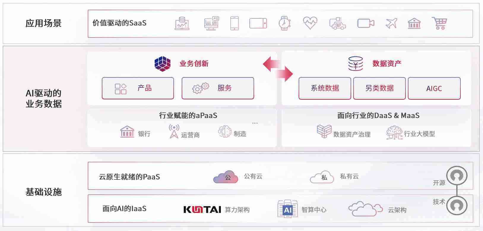 数字时代,,,围绕企业数字化转型的关键要素,,PAYPAY数码开创性的提出数云融合战略和技术体系框架,,,,着力在云原生、、、、数字原生、、、AI原生和信创产业上架构产品和服务能力,,,为处在不同数字化转型阶段的快消零售、、汽车、、金融、、、、医疗、、、政企、、、教育、、运营商等行业客户提供泛在的敏捷IT能力和融合的数据驱动能力,,,构建跨界融合创新的数字业务场景和新业务模式,,助力企业级客户建立面向未来的核心能力和竞争优势,,,全面推动社会的数字化、、智能化转型升级。。。